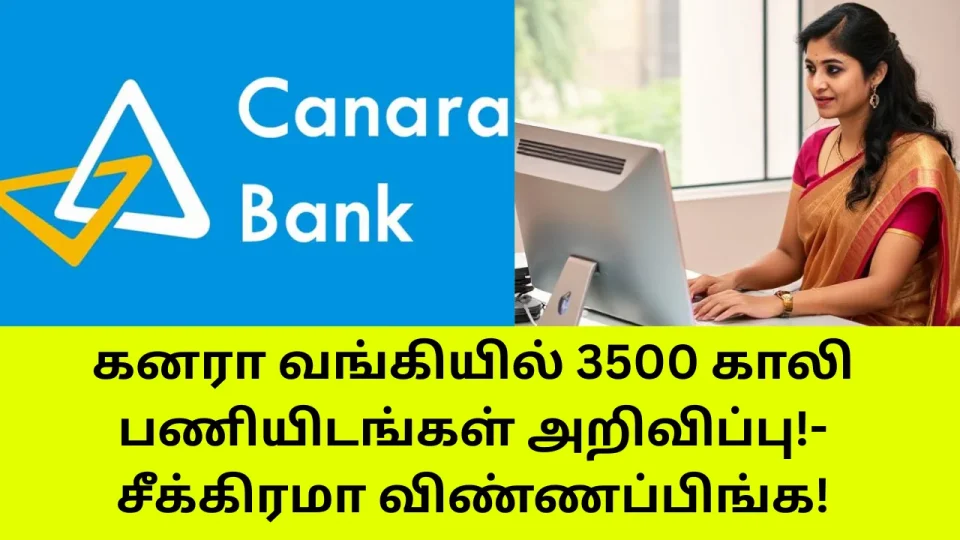 உங்கள் ஊரில் உள்ள கனரா வங்கியில் 3500 அப்ரண்டிஸ் வேலை – ரூ.15000 சம்பளம் || தேர்வு கிடையாது! Canara Bank Recruitment 2025